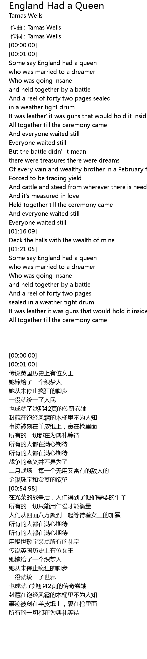 | [00:00.00] | zuò qǔ : Tamas Wells |