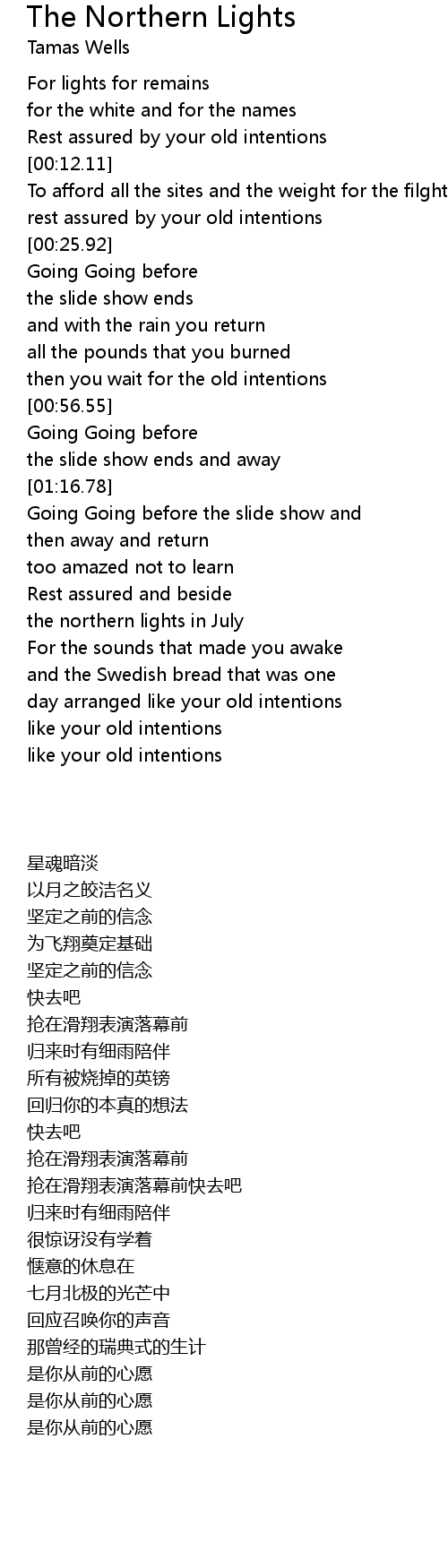 rest assured by your old intentions |