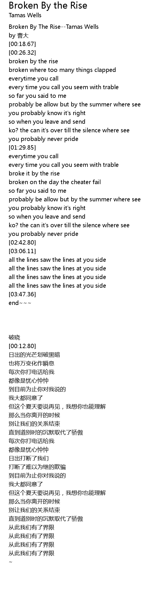 | [00:07.94] | Broken By The RiseTamas Wells |