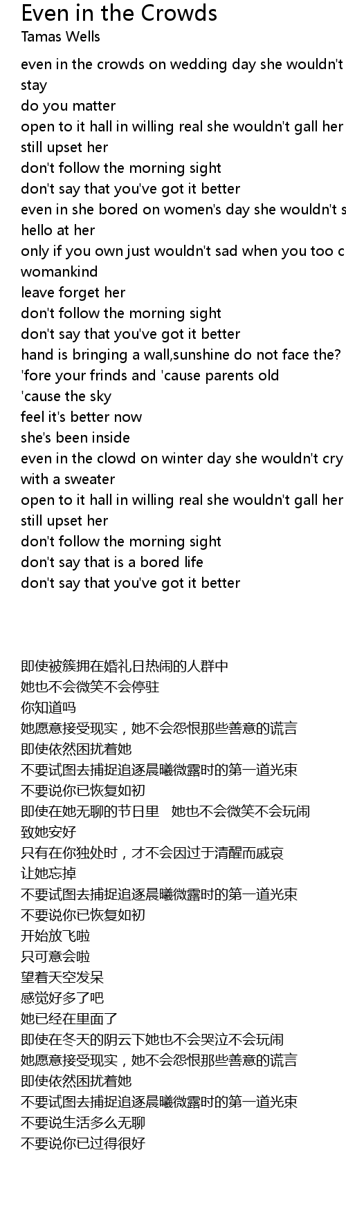 even in the crowds on wedding day she wouldn't smile she wouldn't stay |