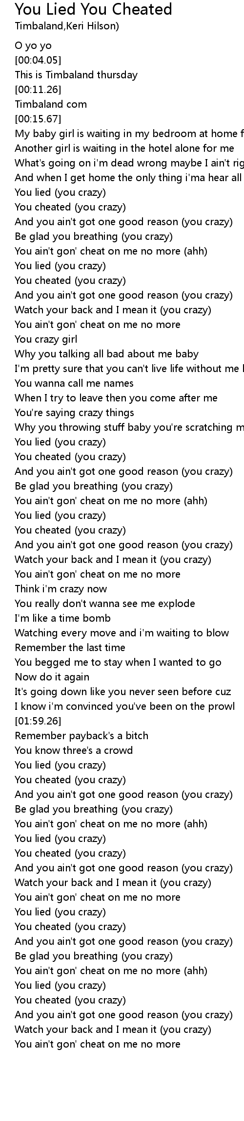 | [00:53.24] | You ain't gon' cheat on me no more |
