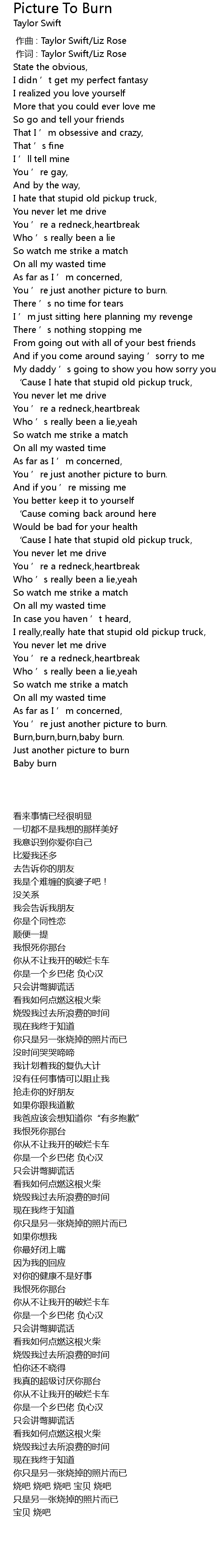 | Song | Picture To Burn |