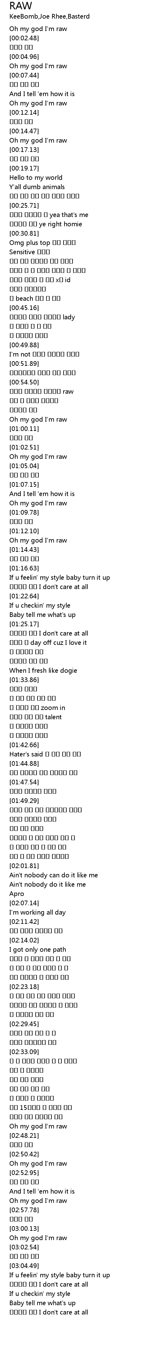 | [00:55.23] | 솔직히 말한다면 니보다는 raw |
