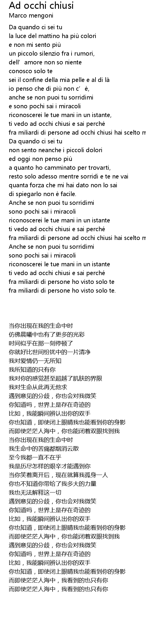| Song | Ad occhi chiusi |