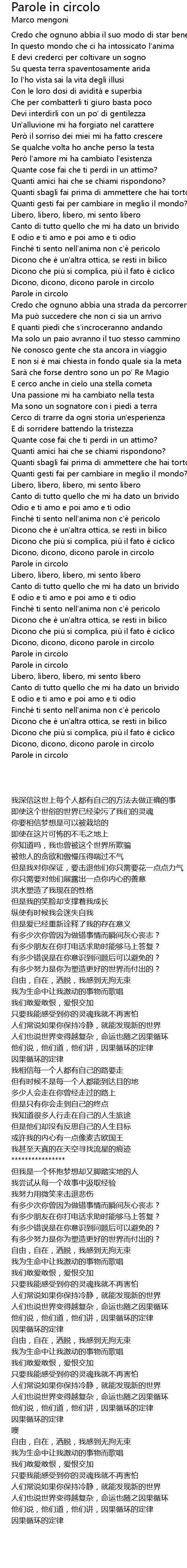 | Song | Parole in circolo |