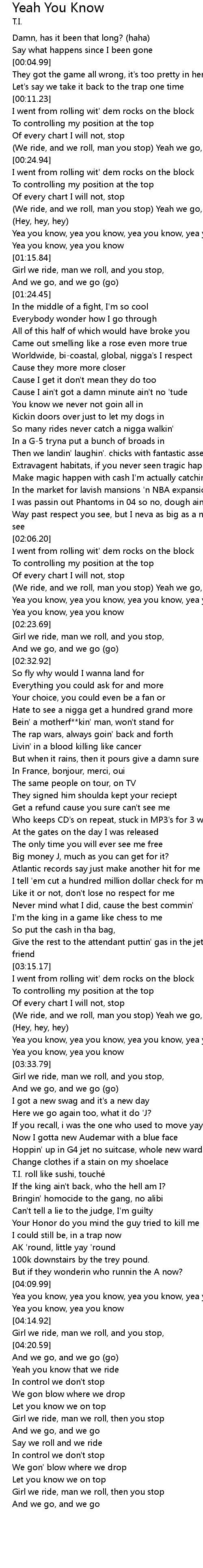 | [04:16.42] | Girl we ride, man we roll, and you stop, |