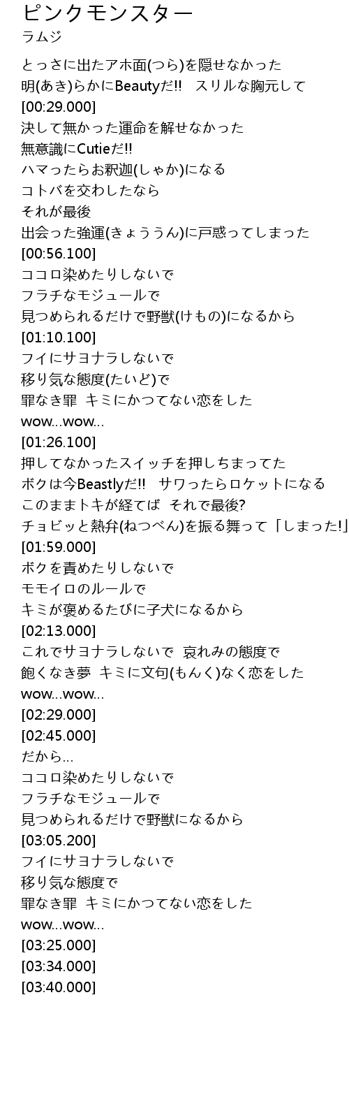 | [01:38.000] | ボクは今Beastlyだ!! サワったらロケットになる |