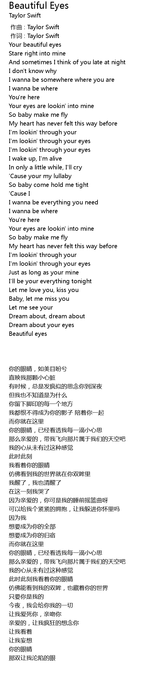 | [00:01.00] | 作词 : Taylor Swift |