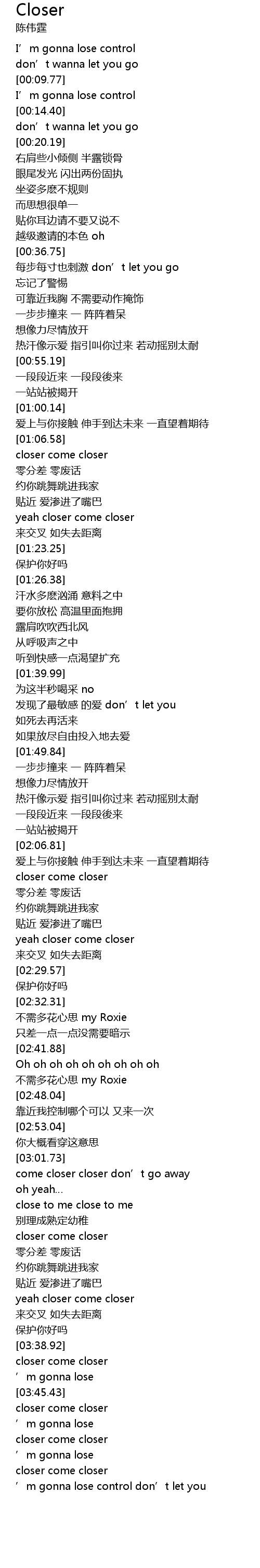 | [03:02.79] | come closer closer don' t go away |
