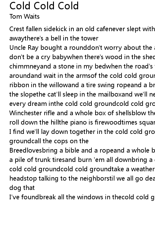 I find we'll lay down together in the cold cold groundcold cold groundcold cold groundcall the cops on the
