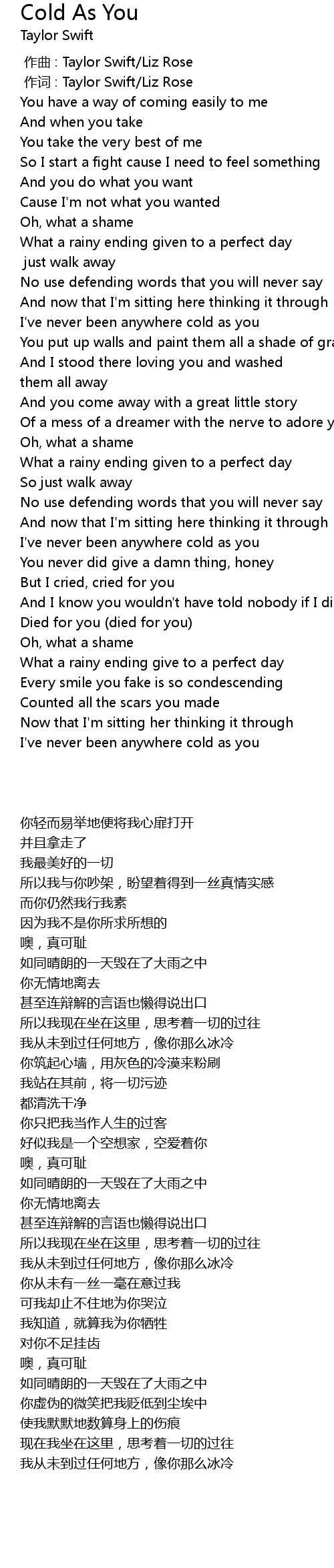 | [00:00.00] | 作曲 : Taylor Swift/Liz Rose |