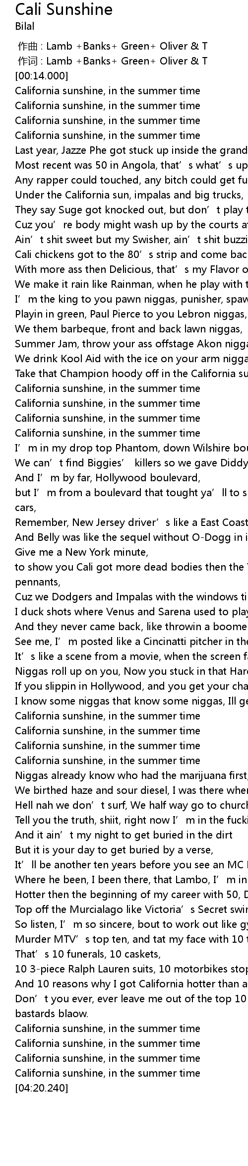 | [01:19.580] | Summer Jam, throw your ass offstage Akon niggas, |