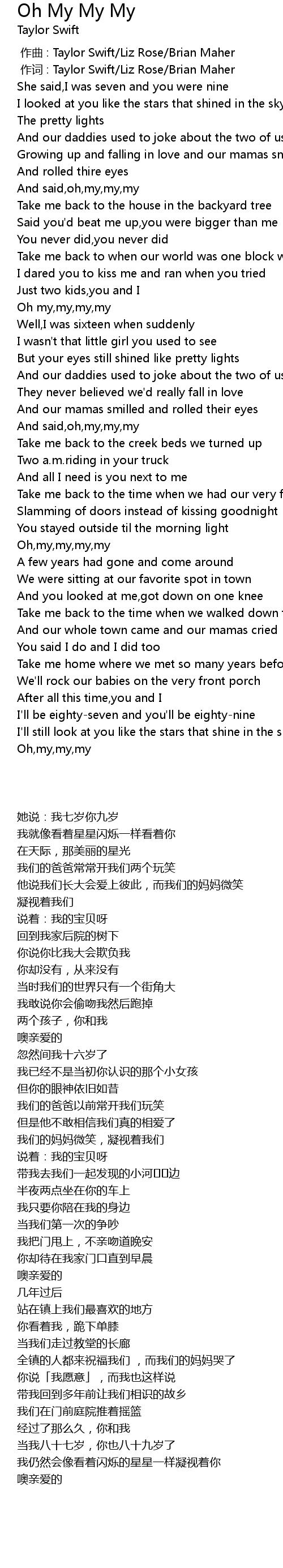 | [00:01.00] | 作词 : Taylor Swift/Liz Rose/Brian Maher |