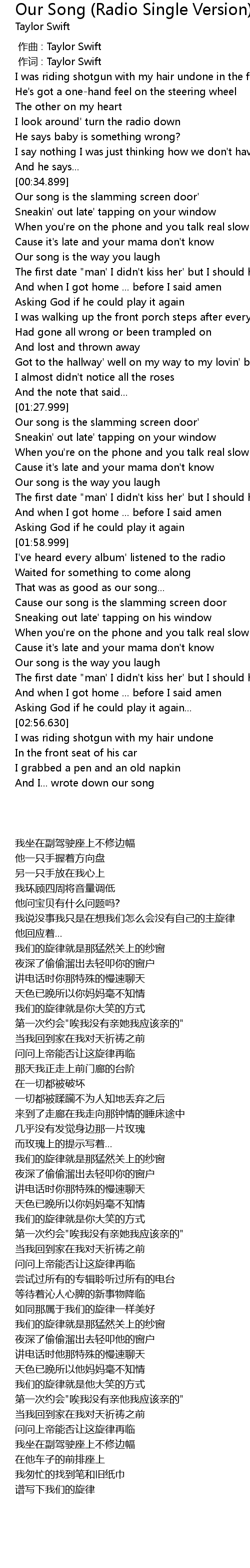 | [00:00.00] | zuò qǔ : Taylor Swift |