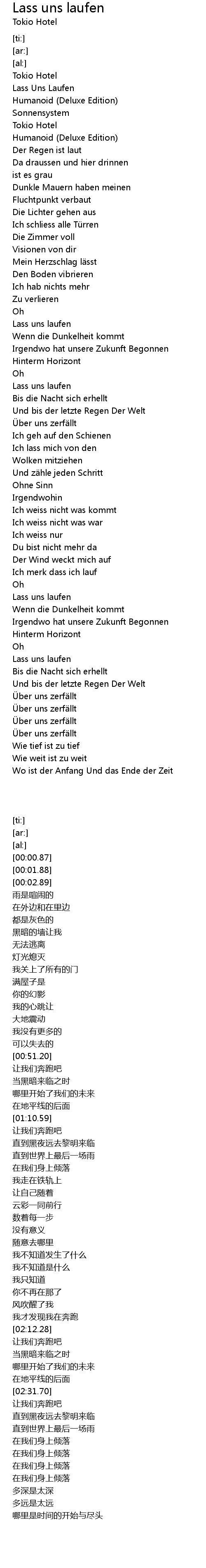 | [01:13.45] | Lass uns laufen |