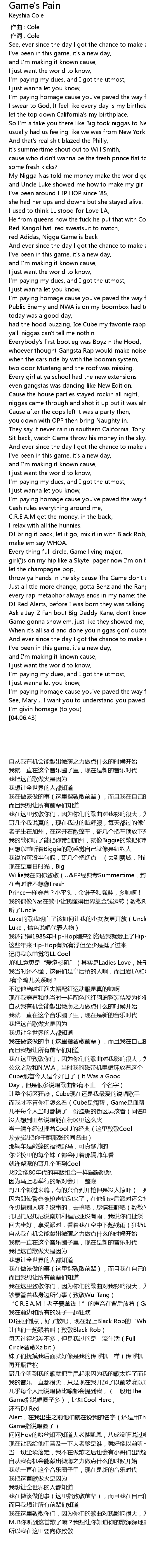 | [03:29.73] | Game gonna show em, just like they showed me, my lyrics is O.G. |