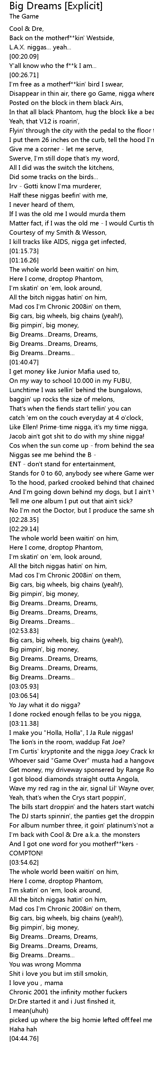 | [04:20.49] | You was wrong Momma |