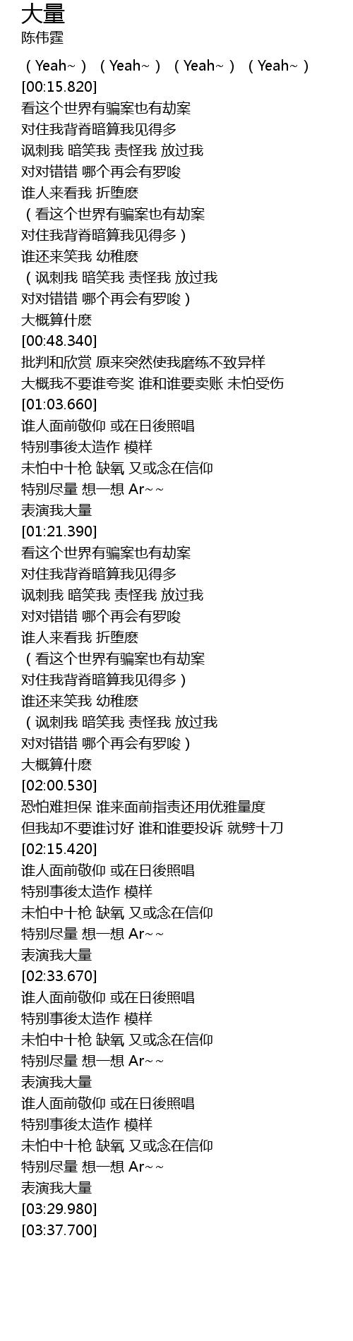 | [03:26.250] | biǎo yǎn wǒ dà liàng |