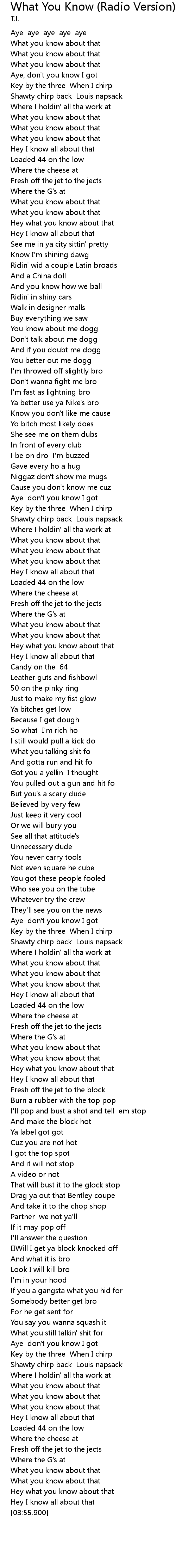 | [02:32.560] | What you know about that |