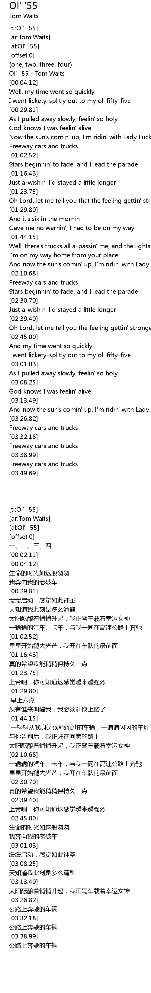 | [02:51.60] | I went lickety-splitly out to my ol' fifty-five |