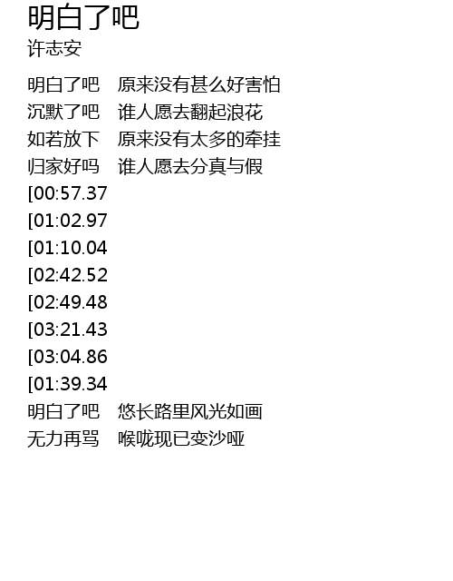 | [00:43.55] | 如若放下 原来没有太多的牵挂 |