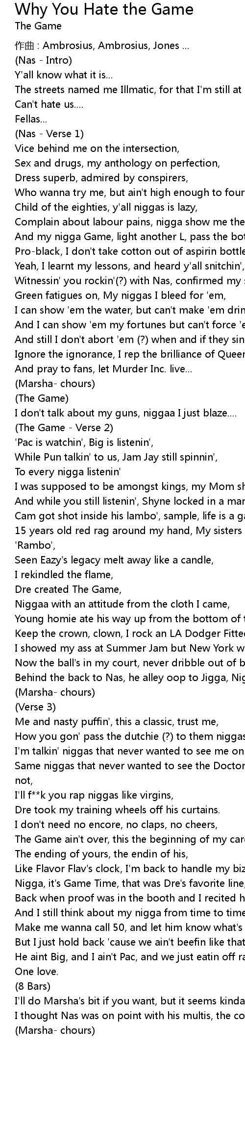 | Nigga, it' s Game Time, that was Dre' s favorite line, | |