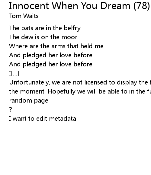 | Song | Innocent When You Dream (78) |