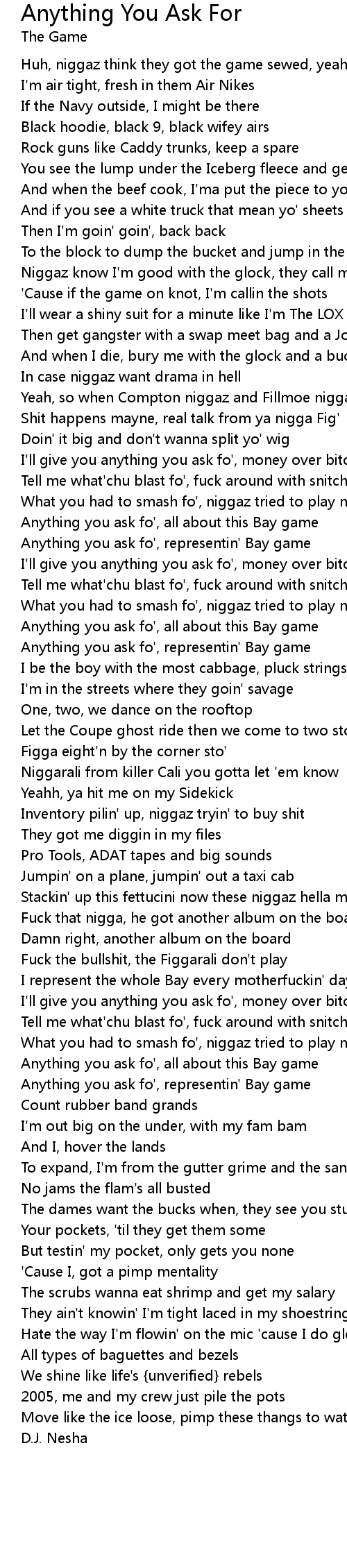 | Huh, niggaz think they got the game sewed, yeah right | |