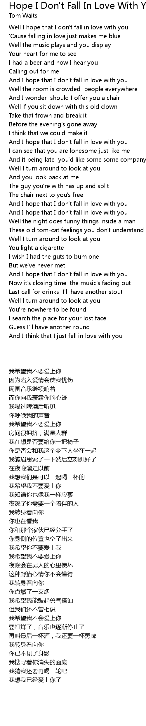 And I hope that I don't fall in love with you |