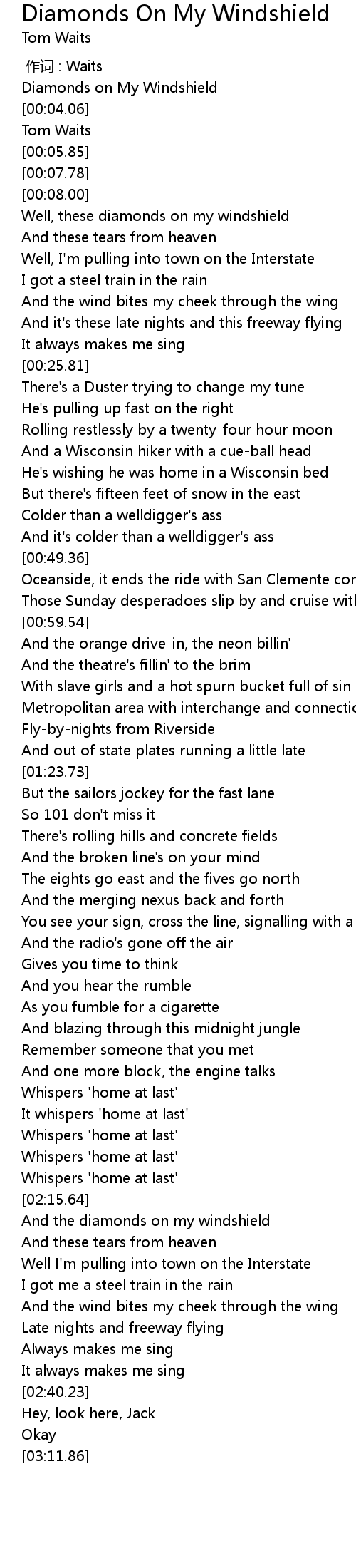 | [00:13.37] | Well, I'm pulling into town on the Interstate |