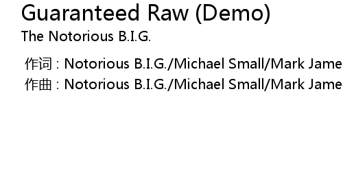 | [00:00.000] | zuo ci : Notorious B. I. G. Michael Small Mark James Nathaniel Hall |