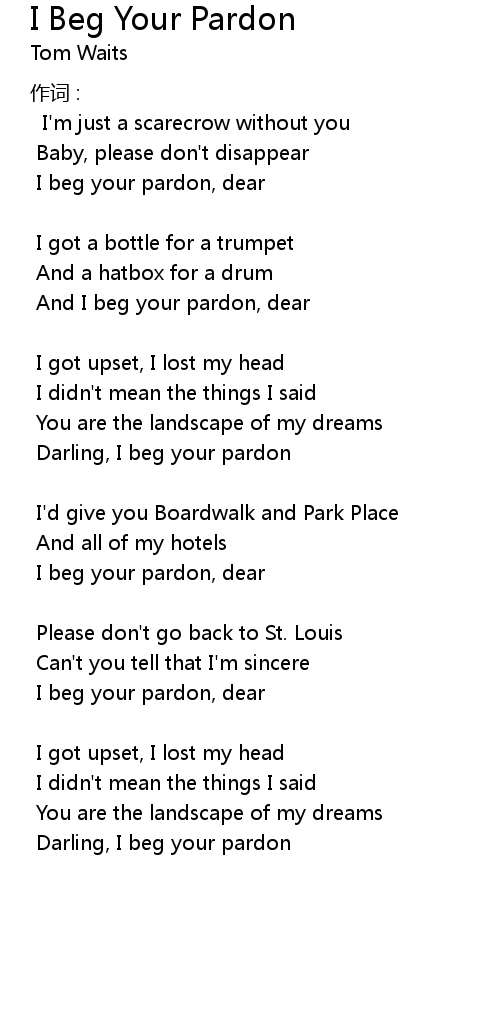 | Song | I Beg Your Pardon |