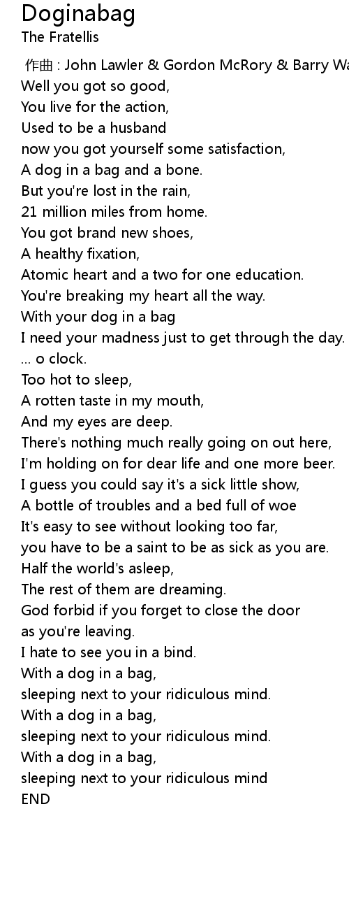 | [00:55.23] | With your dog in a bag |