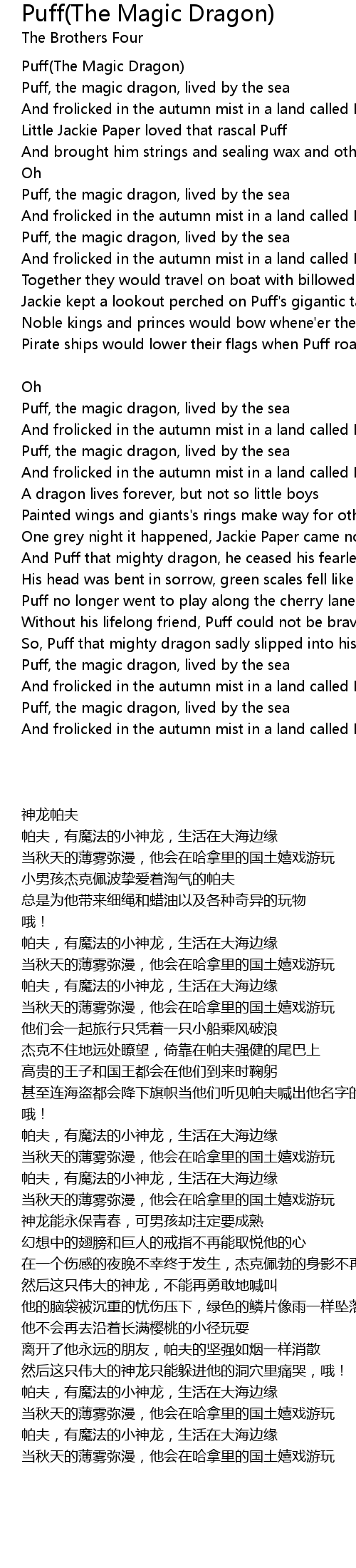 | [00:03.90] | Puff(The Magic Dragon) |