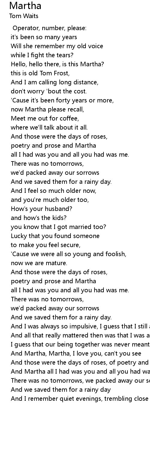 And Martha, Martha, I love you, can't you see |