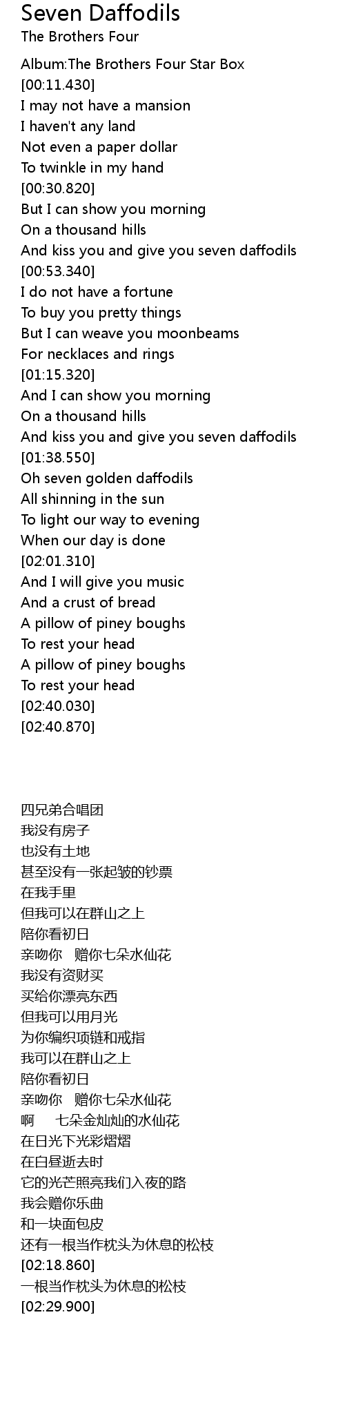 And kiss you and give you seven daffodils |