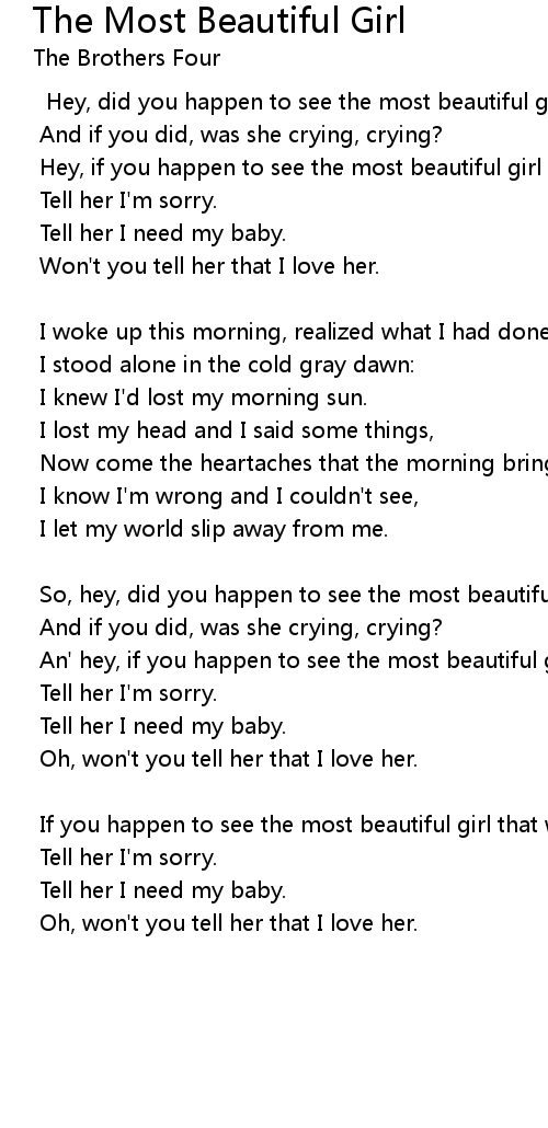If you happen to see the most beautiful girl that walked out on me: |