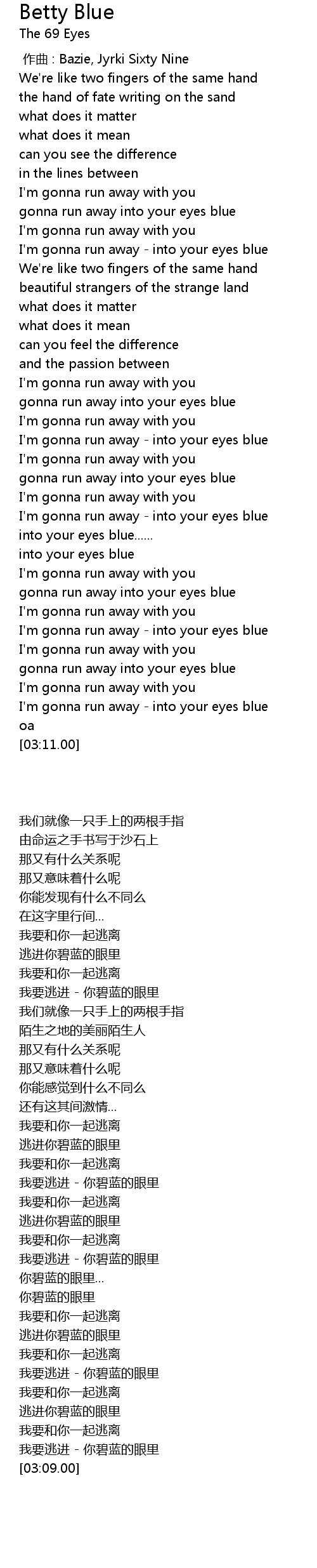 | [02:56.00] | gonna run away into your eyes blue |