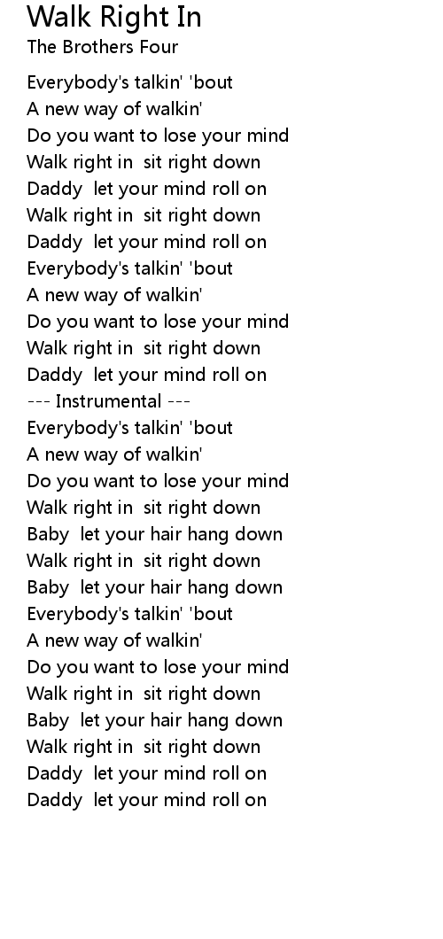 Walk right in sit right down |