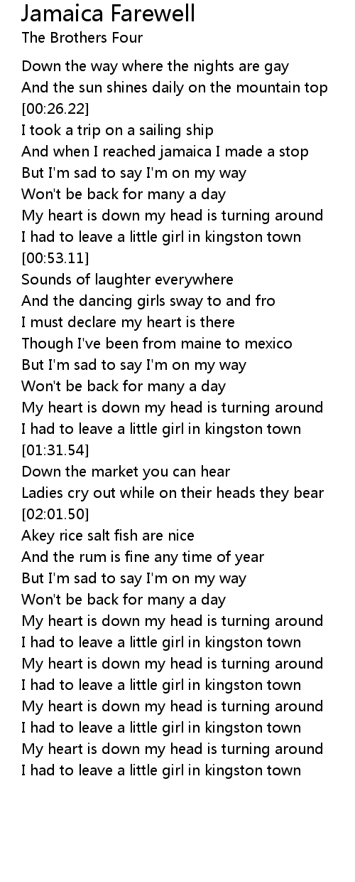 I had to leave a little girl in kingston town |
