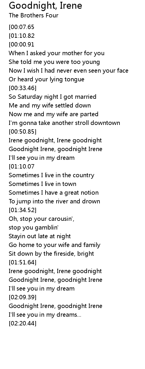 Goodnight Irene, goodnight Irene |