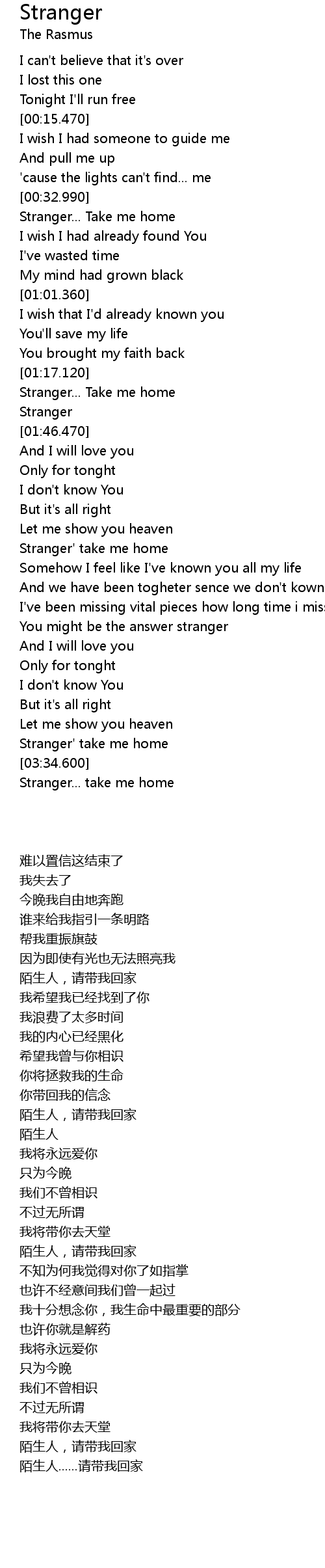 Stranger... Take me home |