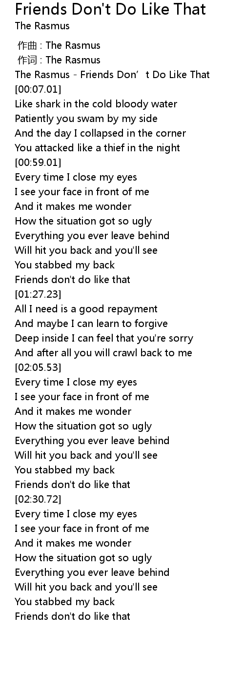 | [00:00.00] | The Rasmus Friends Don' t Do Like That |