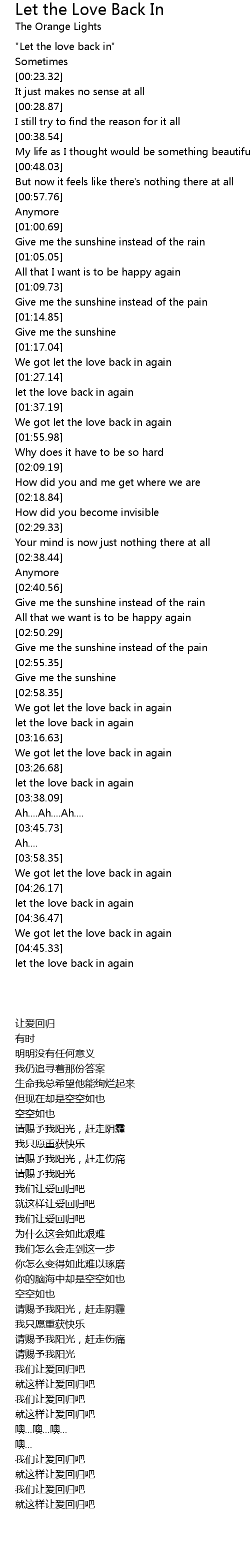 let the love back in again |