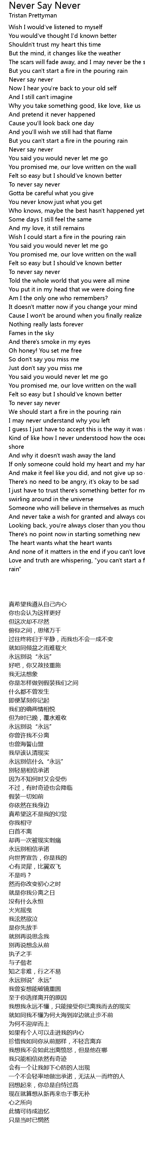 Love and truth are whispering, "you can't start a fire in the pouring rain" |