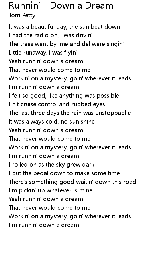 Yeah runnin' down a dream |