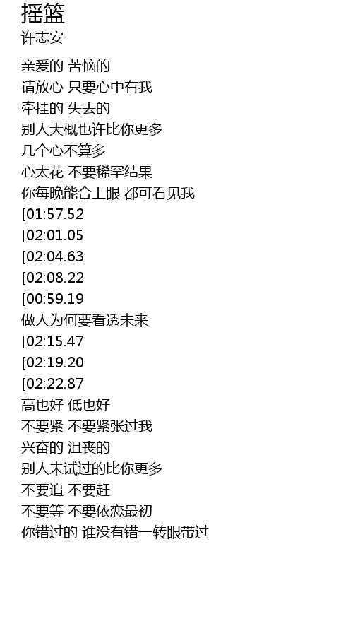 | [02:41.70][01:57.52][00:44.69] | 在我快乐摇篮内 |