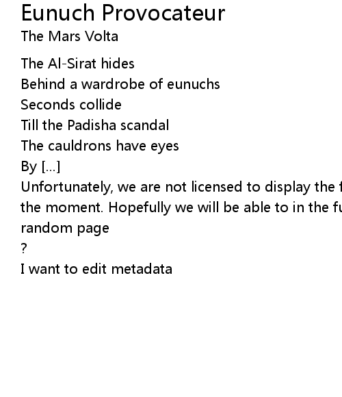 | Unfortunately, we are not licensed to display the full lyrics for this song at the moment. Hopefully we will be able to in the future. Until then, how about a | |
