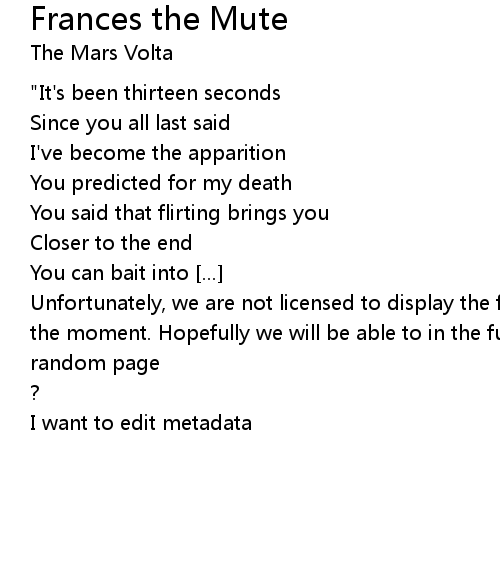 | Unfortunately, we are not licensed to display the full lyrics for this song at the moment. Hopefully we will be able to in the future. Until then, how about a | |