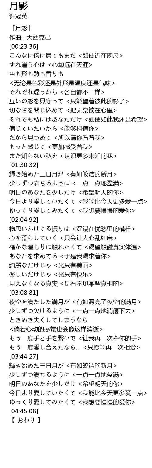 | [04:12.42] | 輝き始めた三日月が <有如皎洁的新月> |